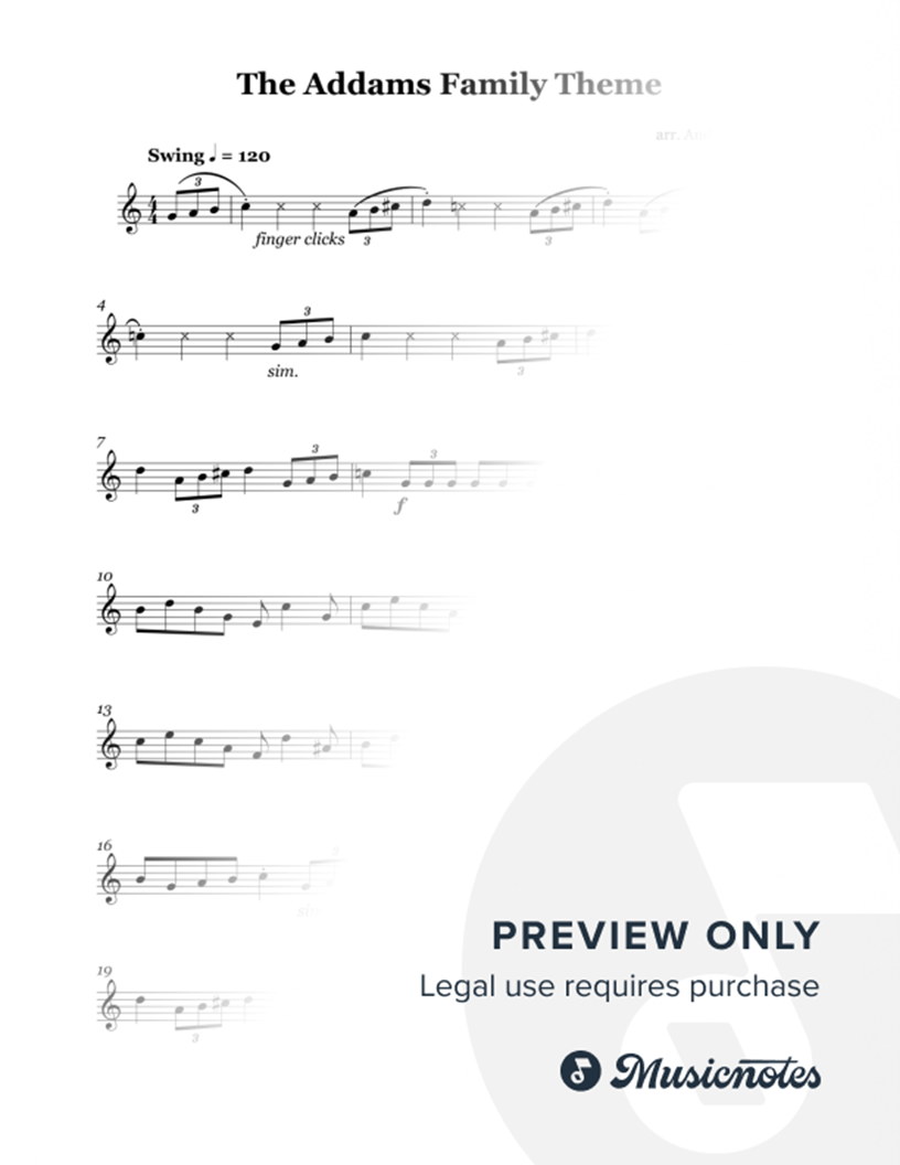 This arrangement of The Addams Family Theme for solo trumpet fits perfectly both with the Sheet Music Boss official piano version and with the original track!