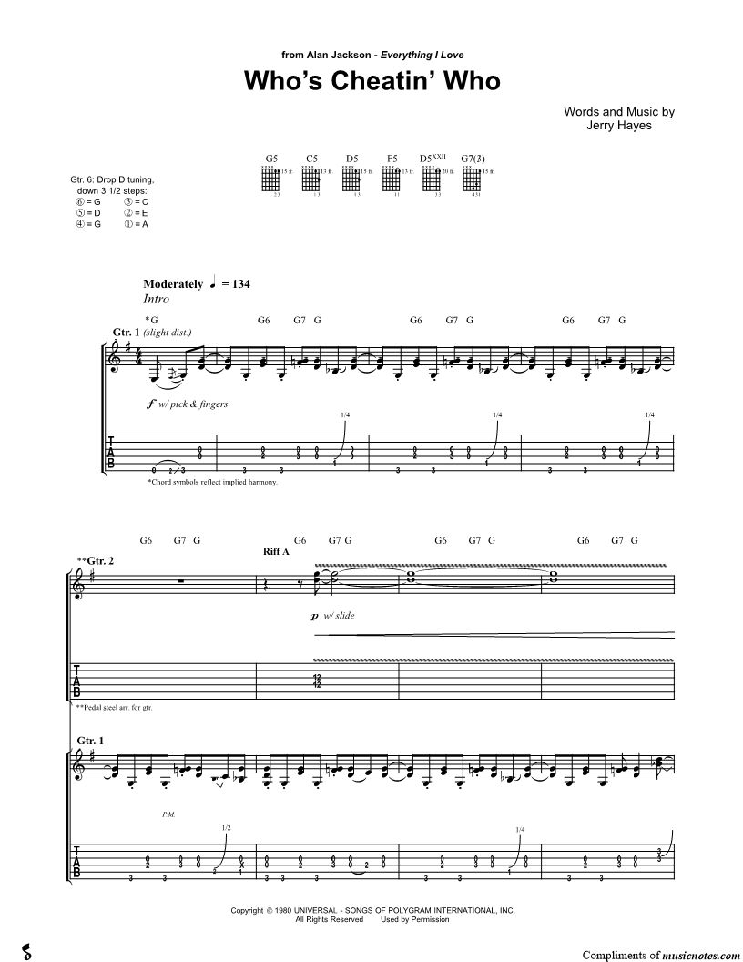Guitar Tab Guitar/Vocal |