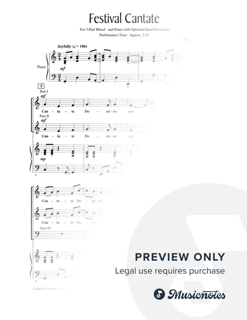 3-Part Choir or Mixed Choir Piano Accompaniment Percussion | |