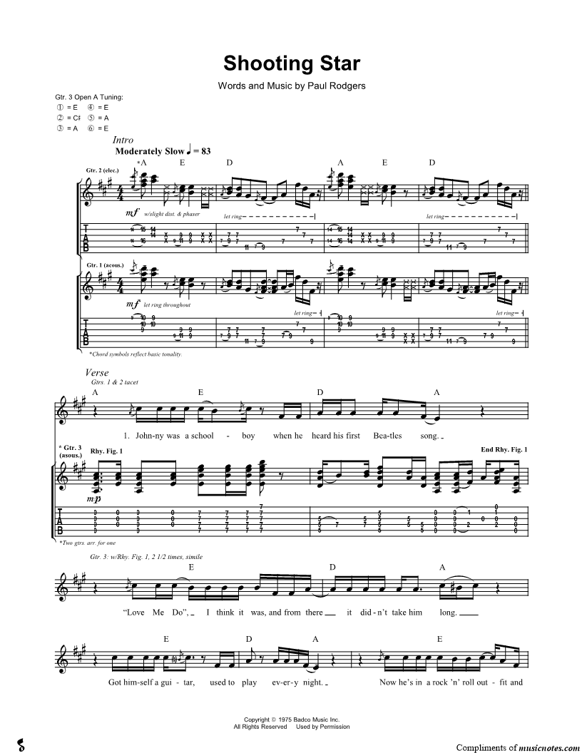 Guitar Tab Guitar/Vocal |