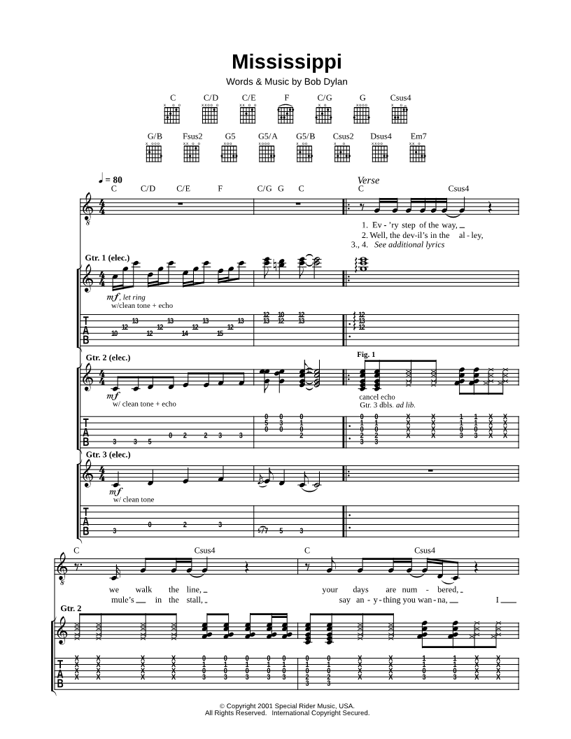 Guitar TAB Guitar/Vocal |