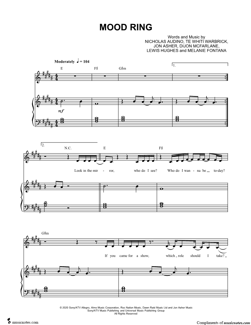 Voice, range: F#3-G#4 Backup Vocals Piano | |