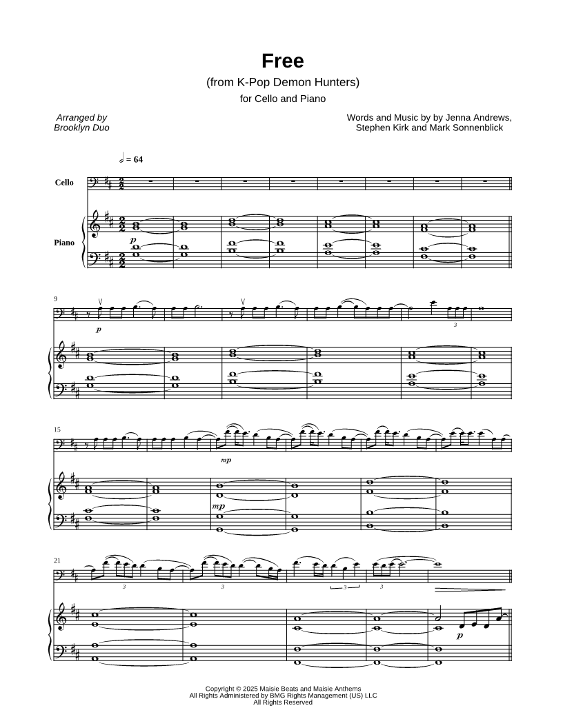 Cello, range: G2-D5 Piano | |