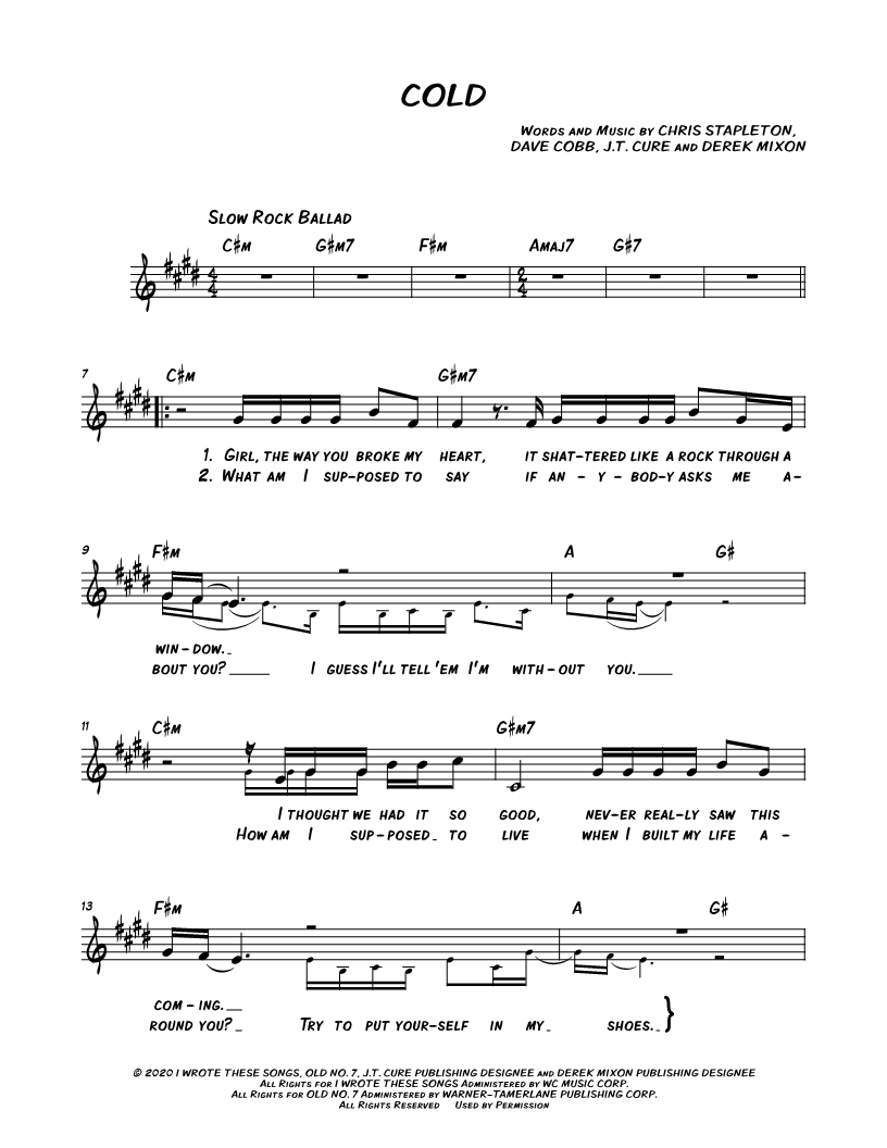 Leadsheets typically only contain the lyrics, chord symbols and melody line of a song and are rarely more than one page in length. Musicians will often use these skeletons to improvise their own arrangements. Leadsheets often do not contain complete lyrics to the song.