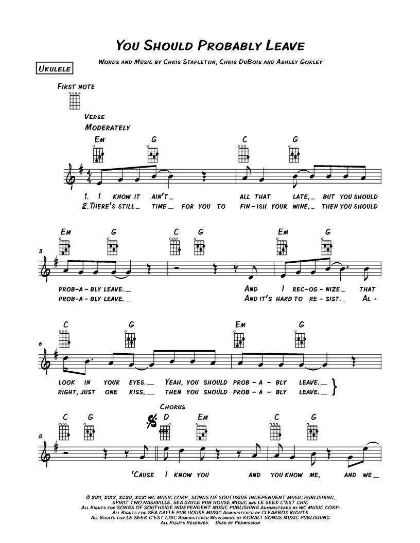 Leadsheets typically only contain the lyrics, chord symbols and melody line of a song and are rarely more than one page in length. Musicians will often use these skeletons to improvise their own arrangements. Leadsheets often do not contain complete lyrics to the song.