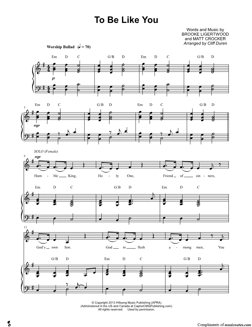 Many of the arrangements on Musicnotes have transpositions available, typically in C Major, as well as 3 sharps and 3 flats. If you do not see your desired key, you can request a transposition by reaching out to Customer Support.