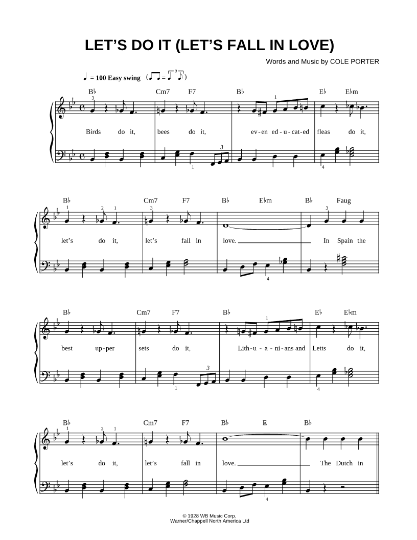 Birds do it, bees do it, even educated fleas do it, let's do it, let's fall in love. |