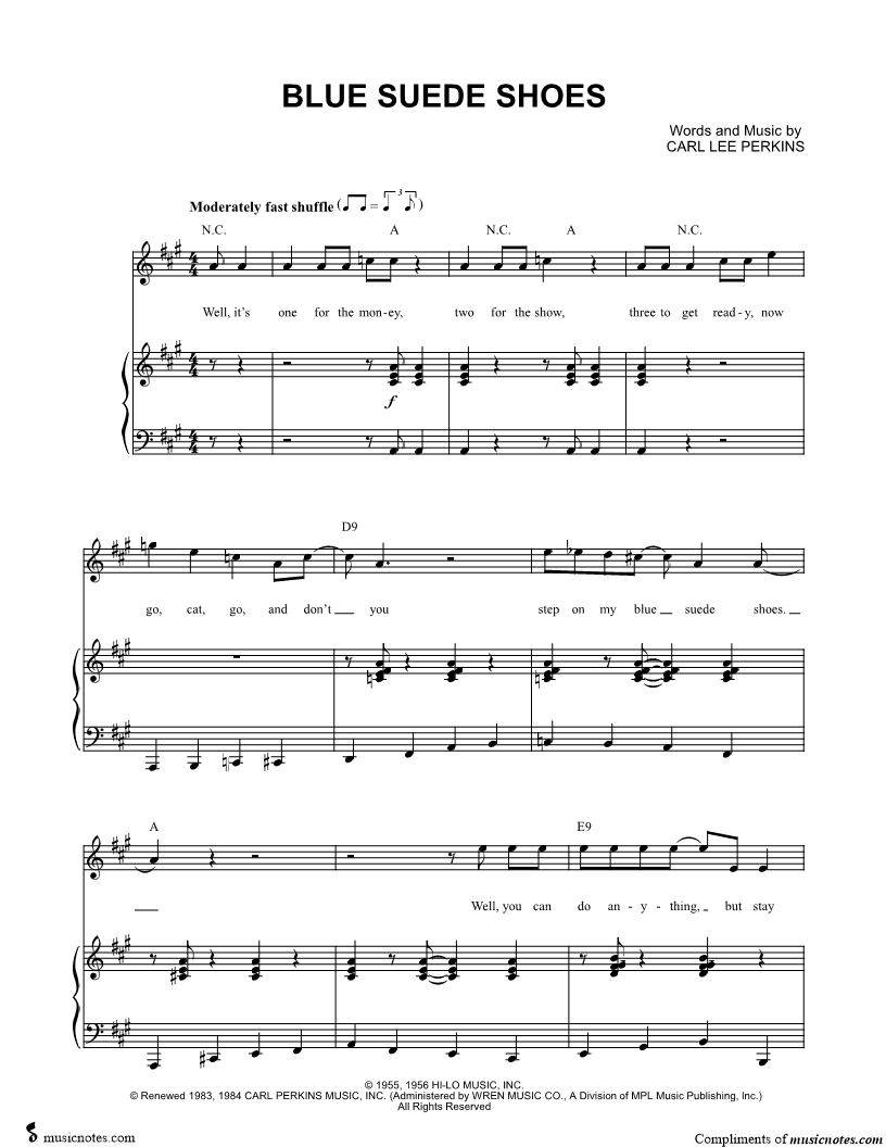 Well, it's one for the money, two for the show, three to get ready, now step on my blue suede shoes. |
