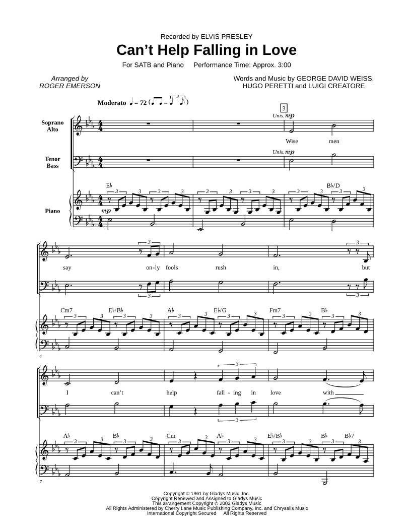 Can't Help Falling In Love - SATB |