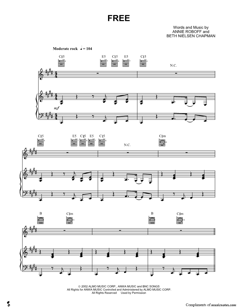 Voice, range: F#3-C#5 Guitar Piano | |