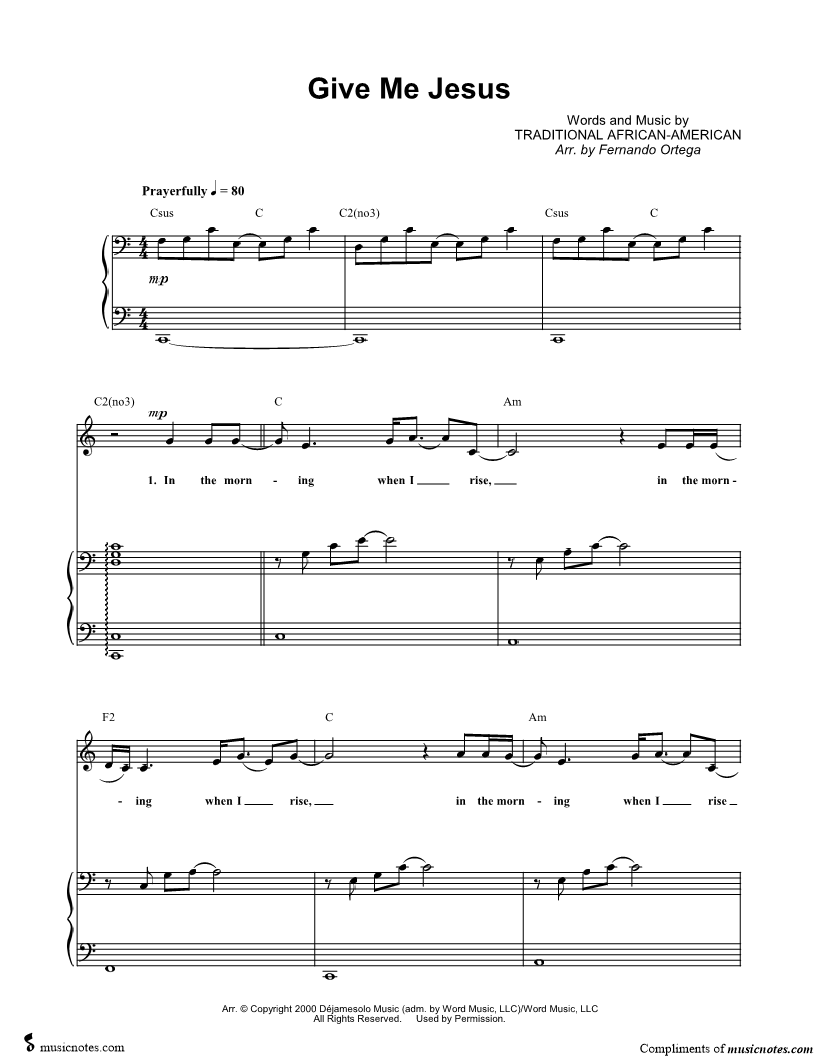 In the morning when I rise, in the morning when I rise, in the morning when I rise give me Jesus. |