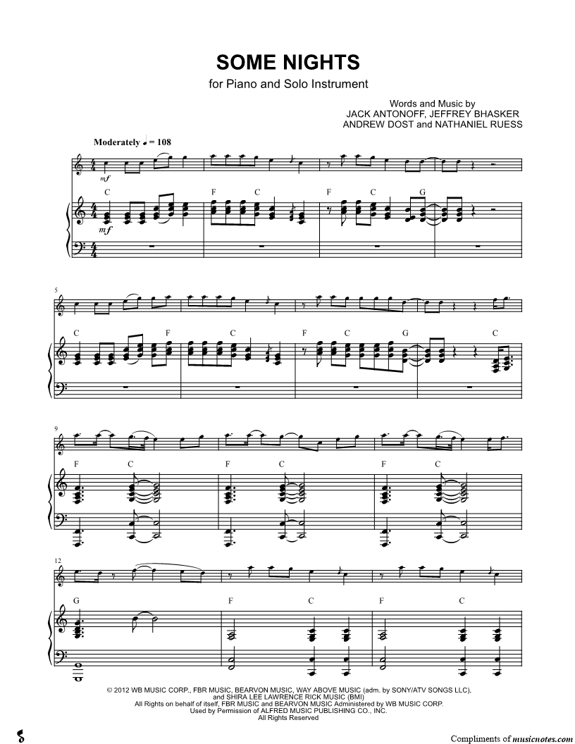 Collection: Some Nights - F Instrument & Piano