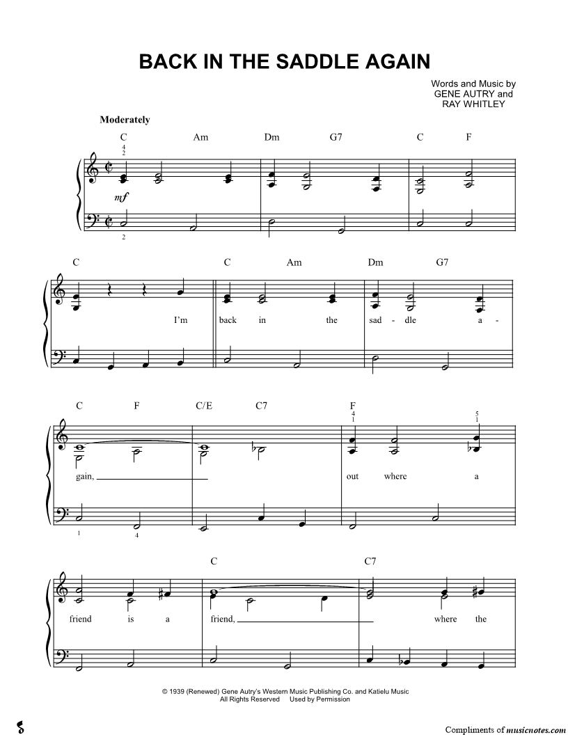 I'm back in the saddle again, out where a friend is a friend, where the longhorn cattle feed on the lowly jimson weed. |