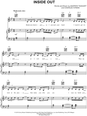Browse our 1 arrangement of "Inside Out." Sheet music is available for Piano, Voice, Guitar with 1 scoring in 3 genres. Find your perfect arrangement and access a variety of transpositions so you can print and play instantly, anywhere.