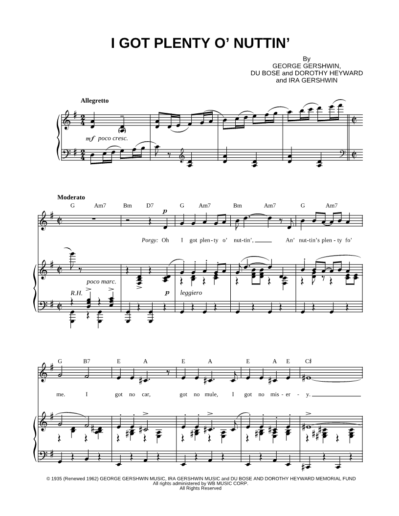 Oh I got plenty o' nuttin', An' nuttin's plenty fo' me. |