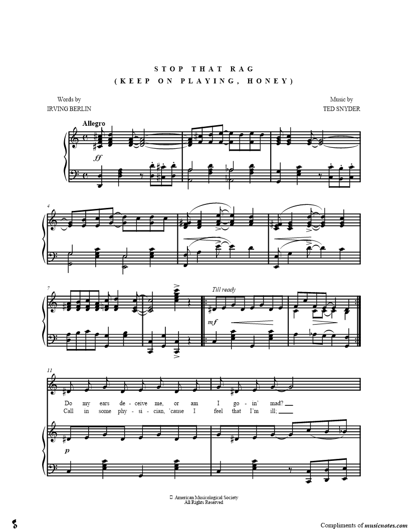 Do my ears deceive me, or am I goin' mad? Honey, please believe me, that my hearin' ain't bad, But something seems to tell me that I'm list'nin to Rag. |