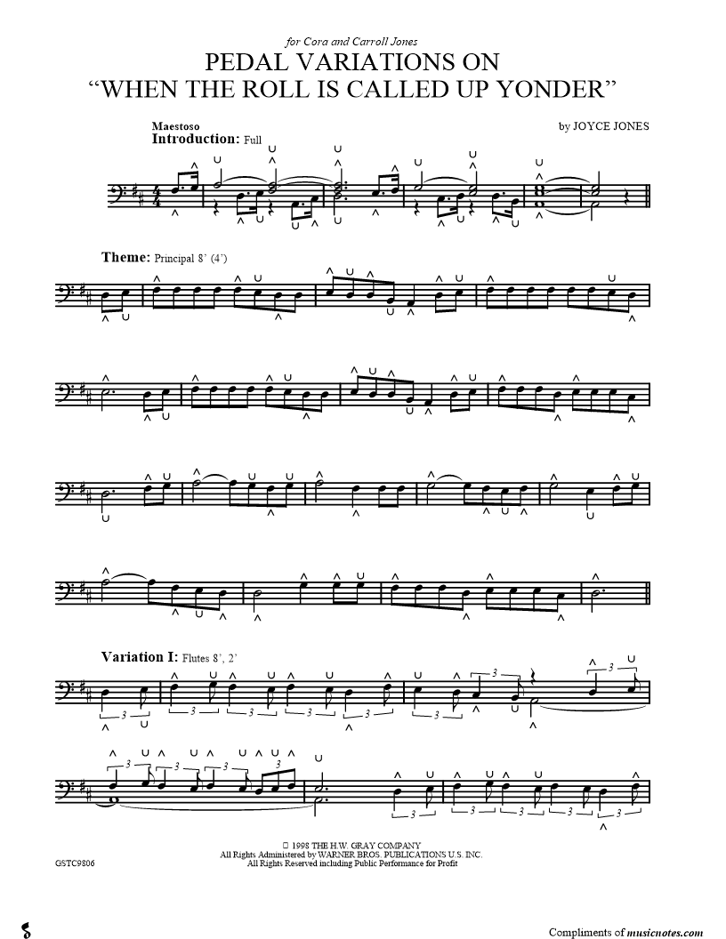 Pedal Variations on "When the Roll Is Called Up Yonder" |