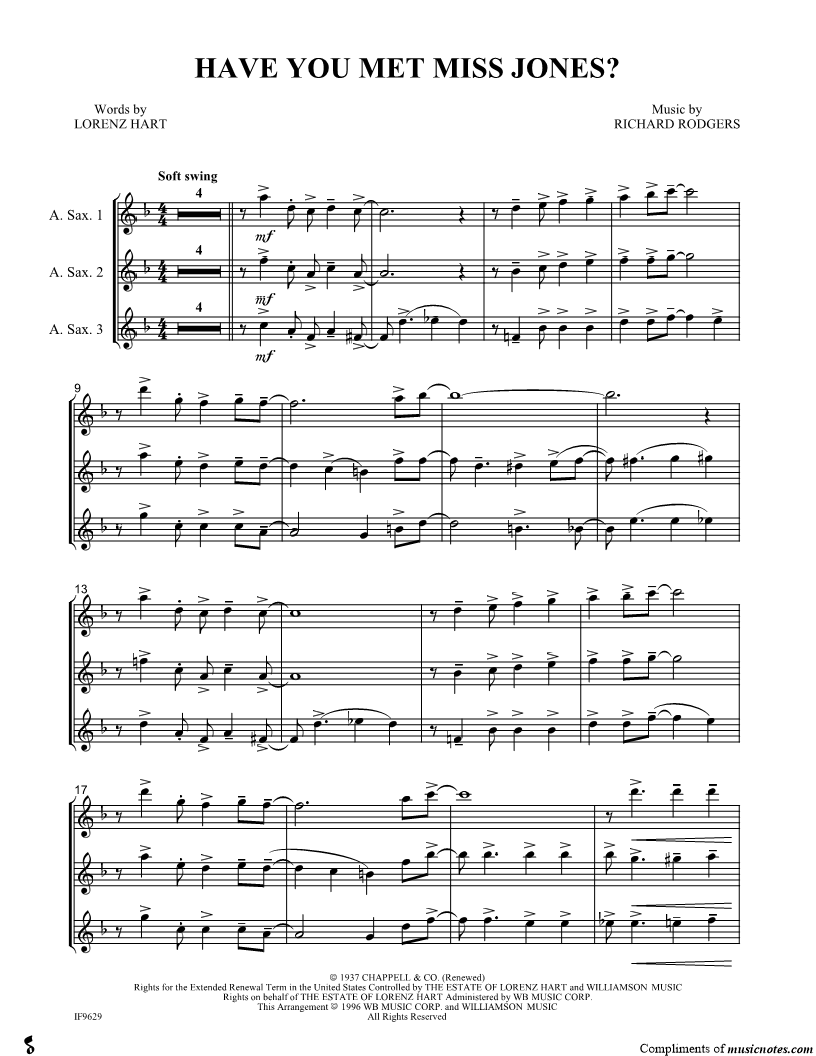 Alto Saxophone 1, range: C5-E6 Alto Saxophone 2, range: A4-D6 Alto Saxophone 3, range: F4-C6 | |