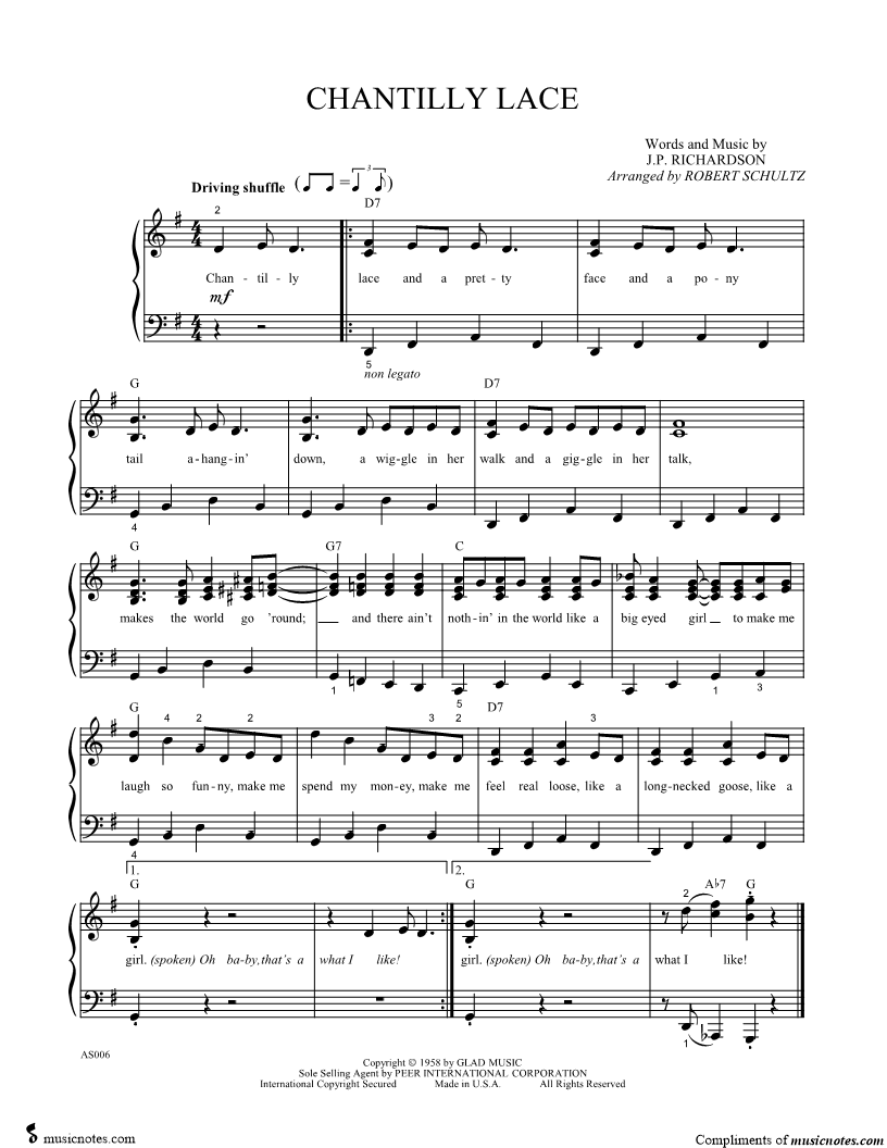 Chantilly lace and a pretty face and a pony tail ahangin' down, |