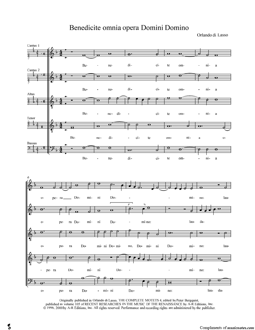 Benedicite omnia opera Domini Domino |
