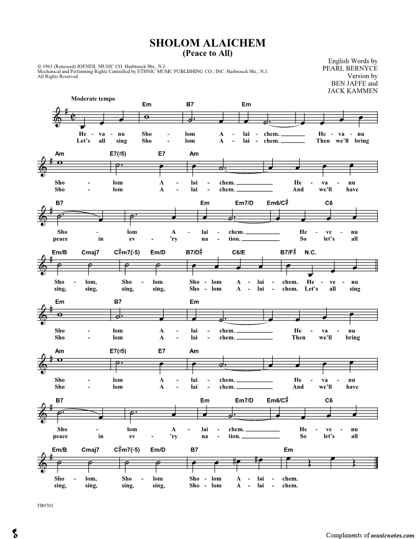 Hevanu Sholom Alaichem. |