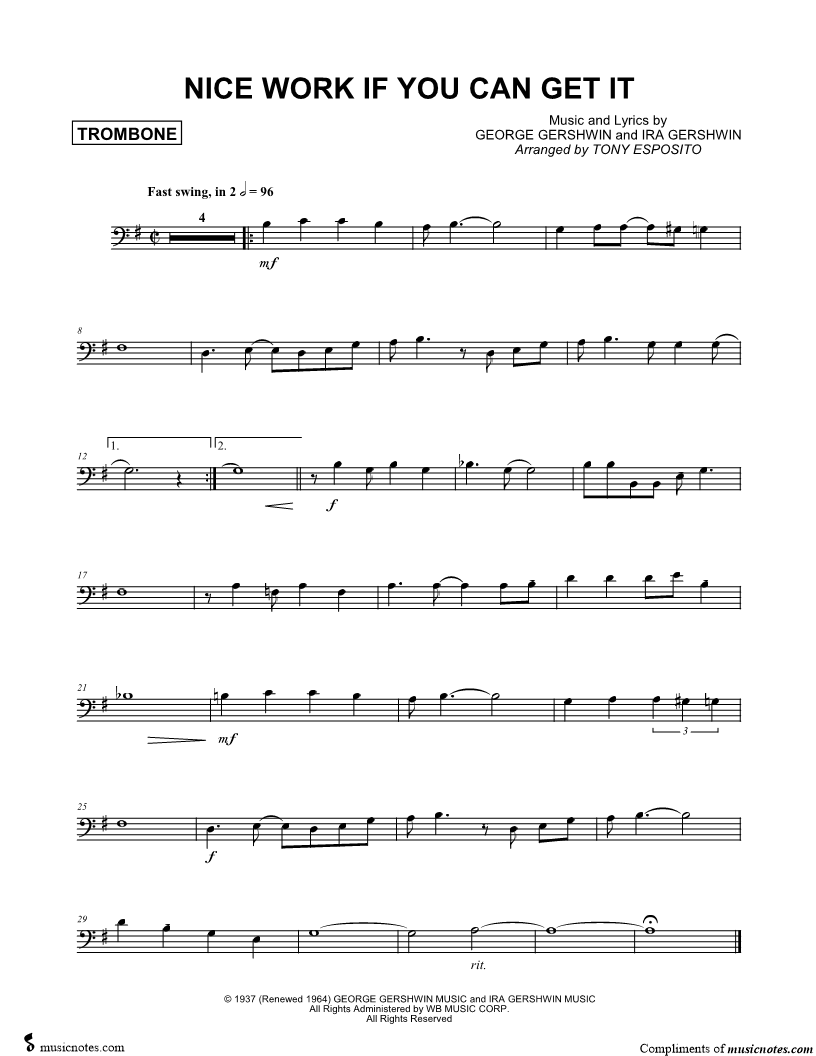 Nice Work If You Can Get It - Trombone |