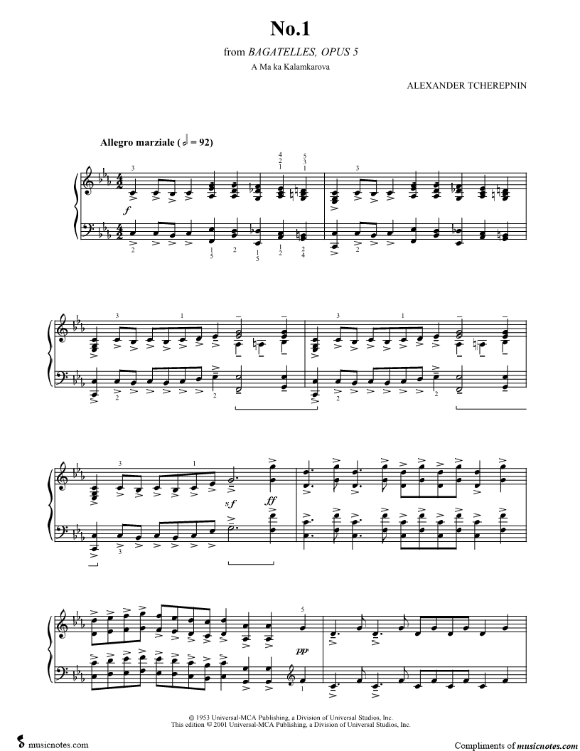 Alexander Tcherepnin Bagatelles, Opus 5 Ten Pieces for Piano |