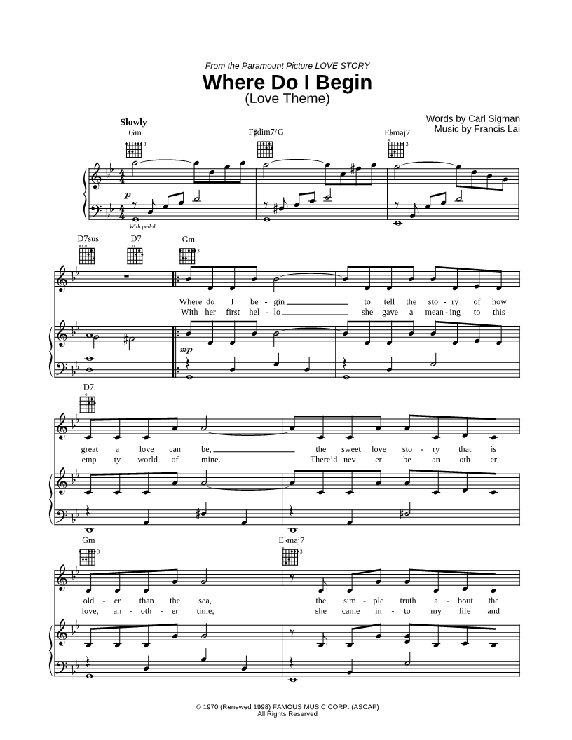 Where do I begin to tell the story of how great a love can be, the sweet love story that is older than the sea, the simple truth about the love she brings to me? |