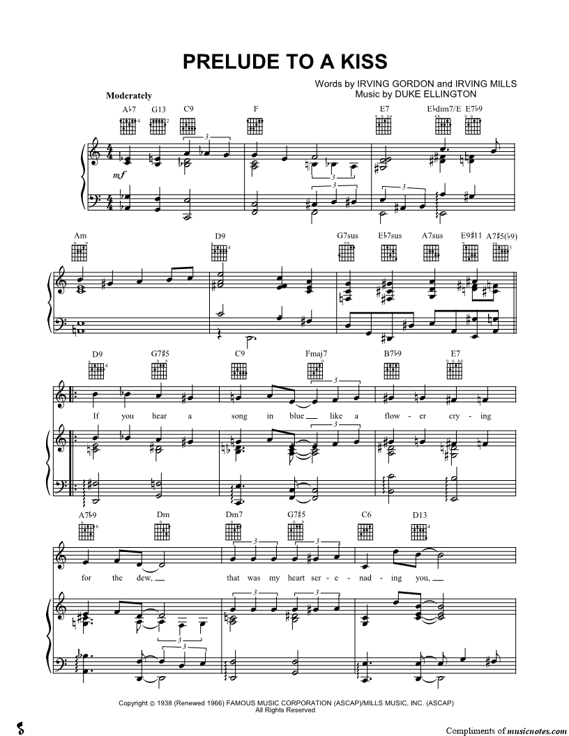 If you hear a song in blue like a flower crying for the dew, that was my heart serenading you, my prelude to a kiss. |