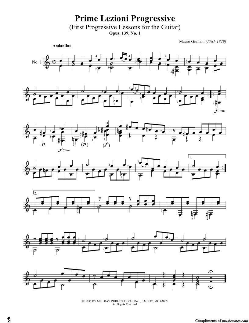 Collection: Primi Lezioni Progressive, Opus 139 First Progressive Lessons