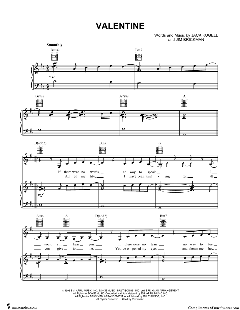 "Valentine is a love song that is versatile --- it can be sung at a Valentines Day party, a..." Read reviews