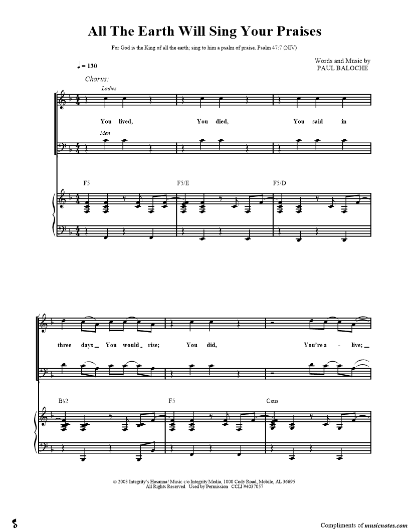 All the Earth Will Sing Your Praises |