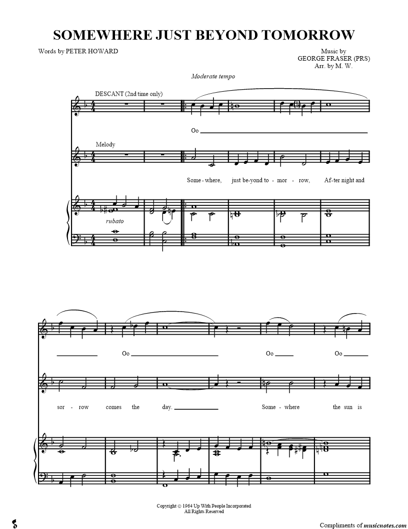 Somewhere, just beyond tomorrow, after night and sorrow comes the day |