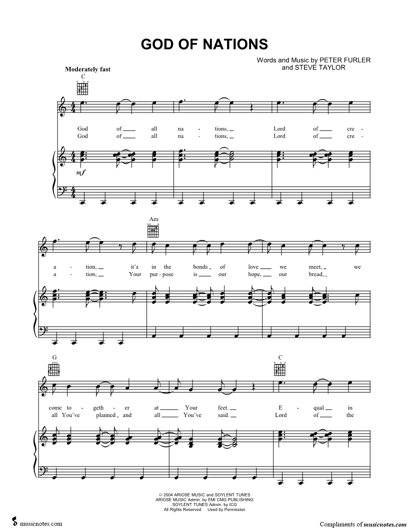 God of all nations, Lord of creation, it's in the bonds of love we meet, we come together at Your feet. |