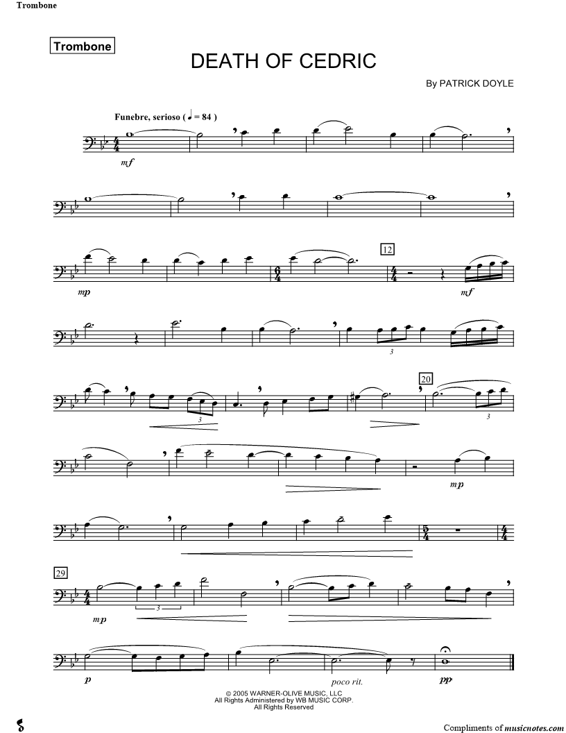 Death of Cedric - Trombone |