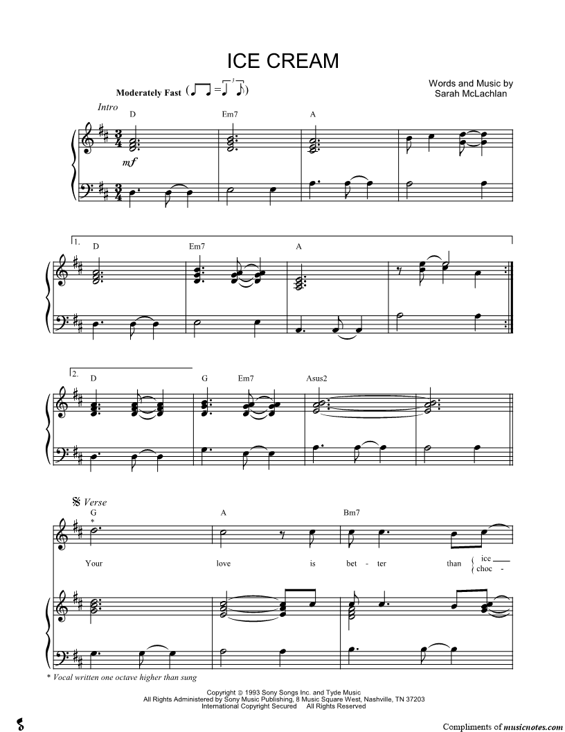 Musicnotes sells a wide variety of digital sheet music products including Singer Pros, Beginner Notes, Choral music, Piano Solos, Lead Sheets, Piano/Vocal/Guitar, Solo and Accompaniment, and fretted instrument tablature.