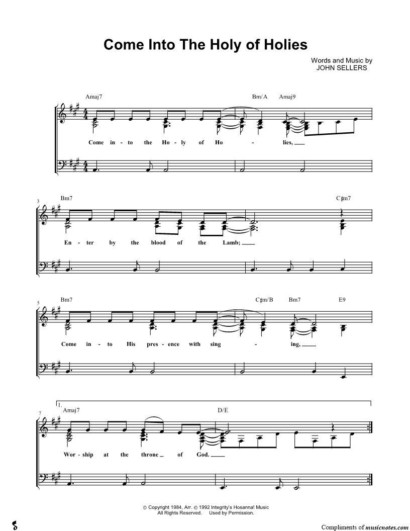 Come into the Holy of Holies, Enter by the blood of the Lamb; |