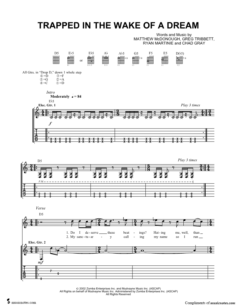 Voice, range: Bb4-G5 Guitar 1, range: D3-Eb5 Guitar 2 | |