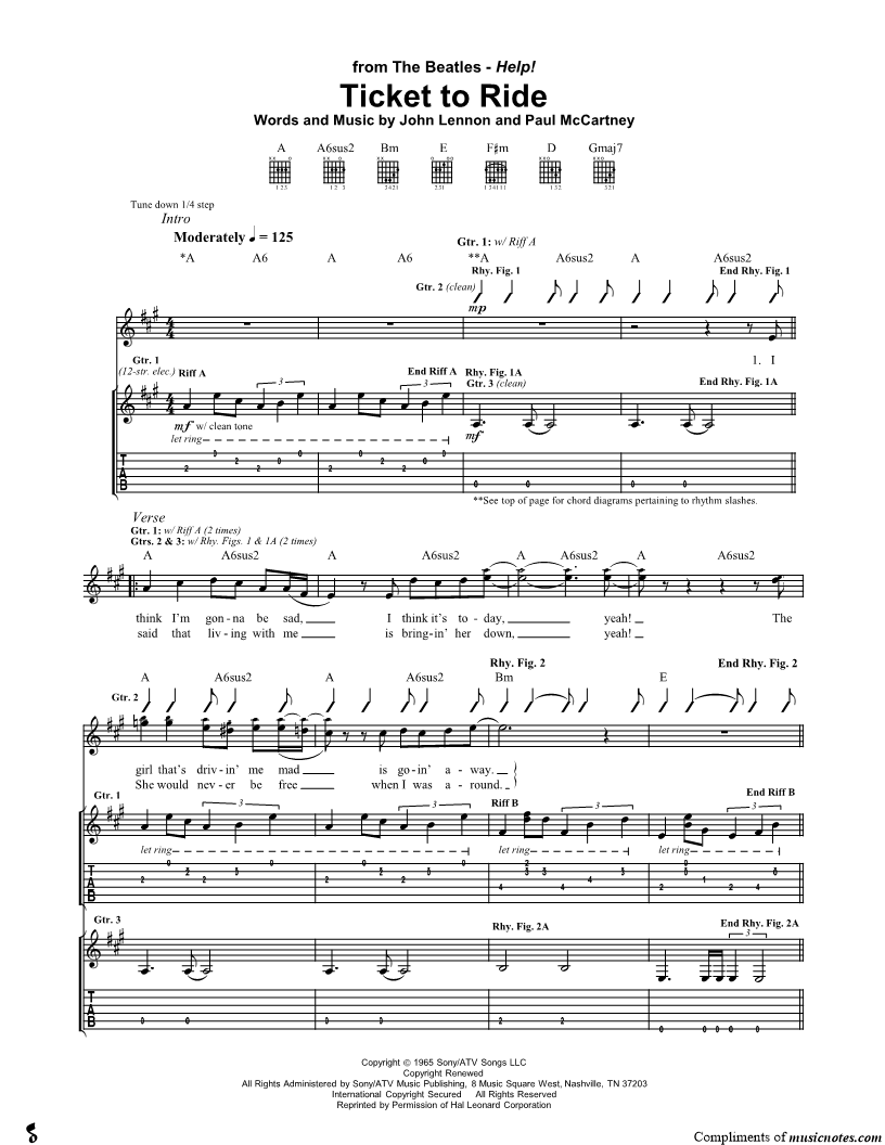 Guitar Tab Guitar/Vocal |