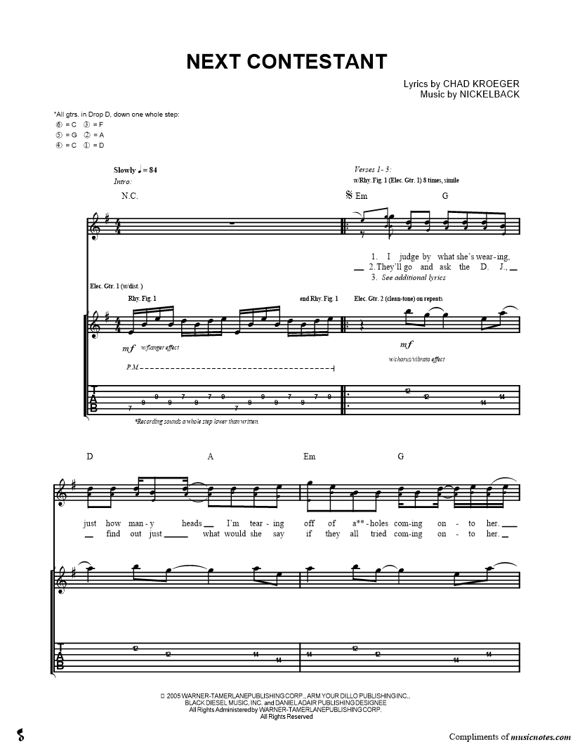 Voice, range: G4-B5 Guitar 1, range: D3-B5 Guitar 2 Guitar 3 Guitar 4 Backup Vocals | |