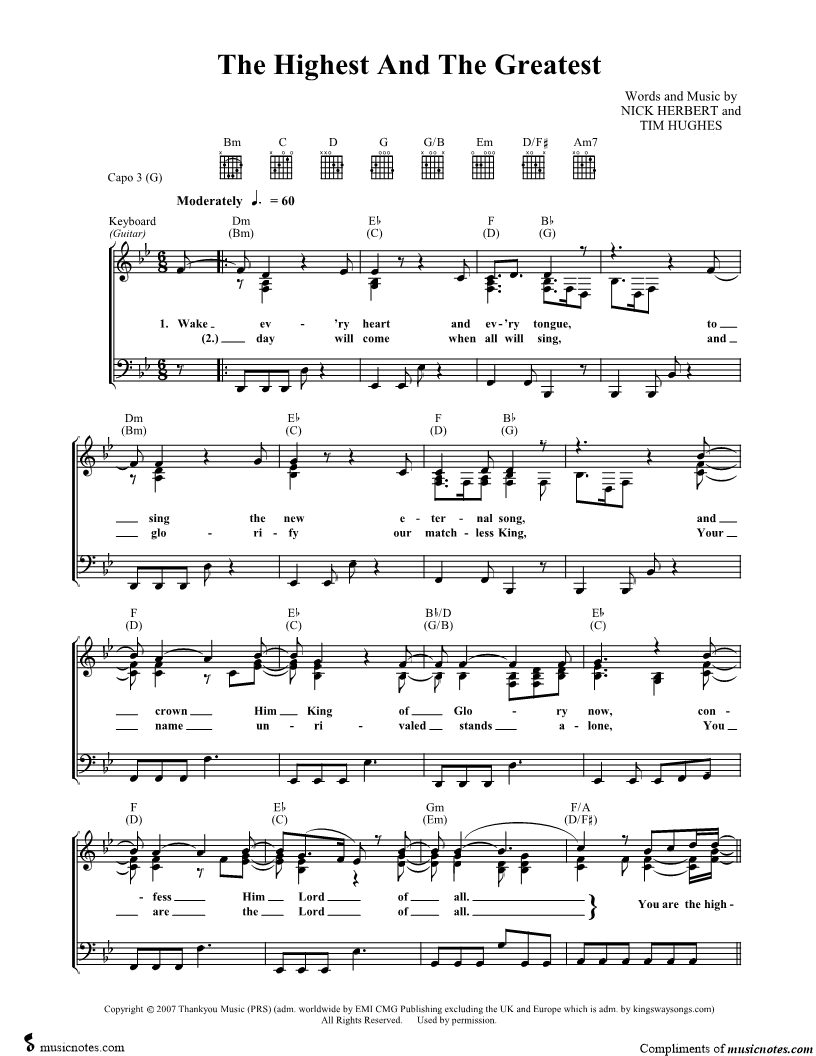 Wake ev'ry heart and ev'ry tongue, to sing the new eternal song, and crown Him King of Glory now, confess Him Lord of all. |