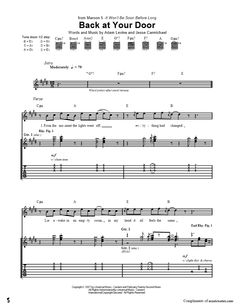 Voice, range: G#4-C#6 Guitar 1, range: E3-C#6 Guitar 2, range: F#4-B5 Guitar 3 Guitar 4 Guitar 5 Backup Vocals | |