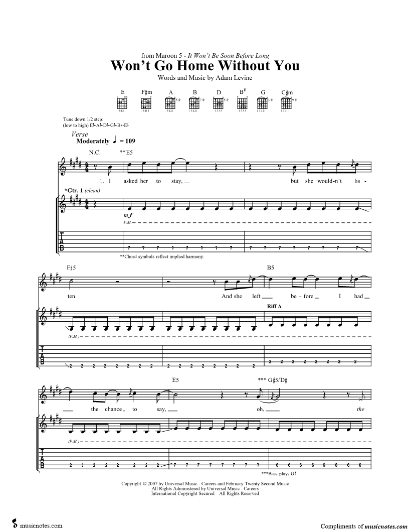 Guitar Tab Guitar/Vocal |