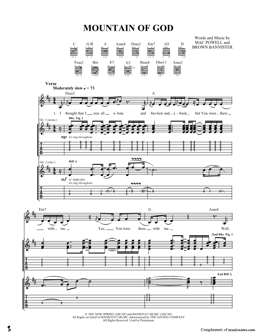 Guitar Tab Guitar/Vocal |