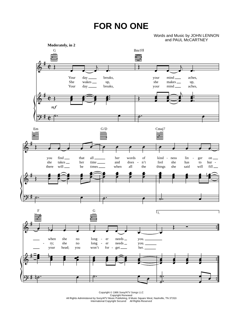 For No One |
