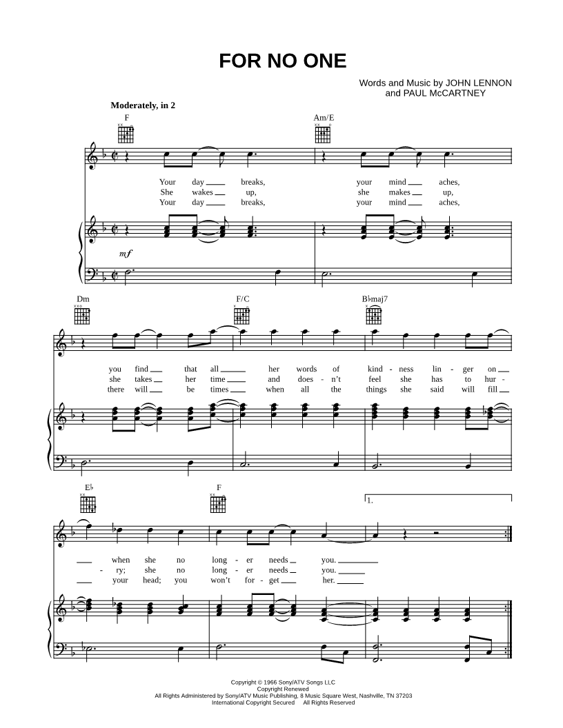 For No One |