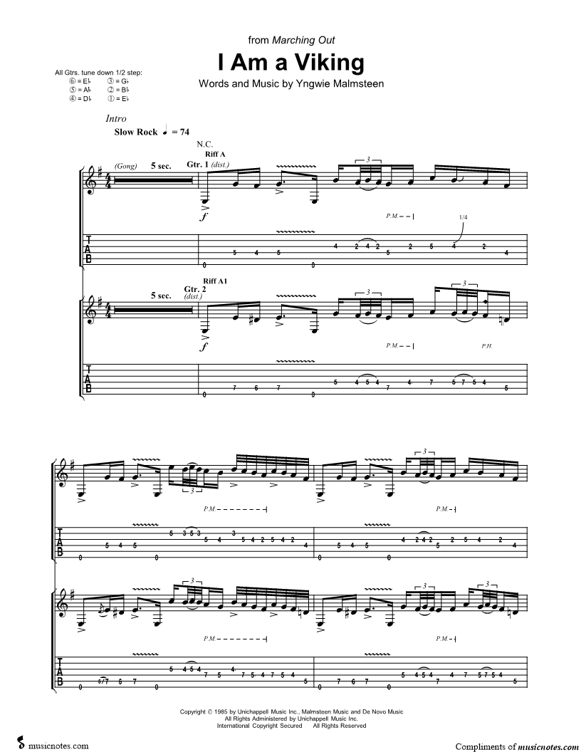 Voice, range: B4-G6 Guitar 1, range: E3-G6 Guitar 2, range: E3-B5 Guitar 3, range: B4-A5 Guitar 4, range: A#4-F#5 Backup Vocals | |
