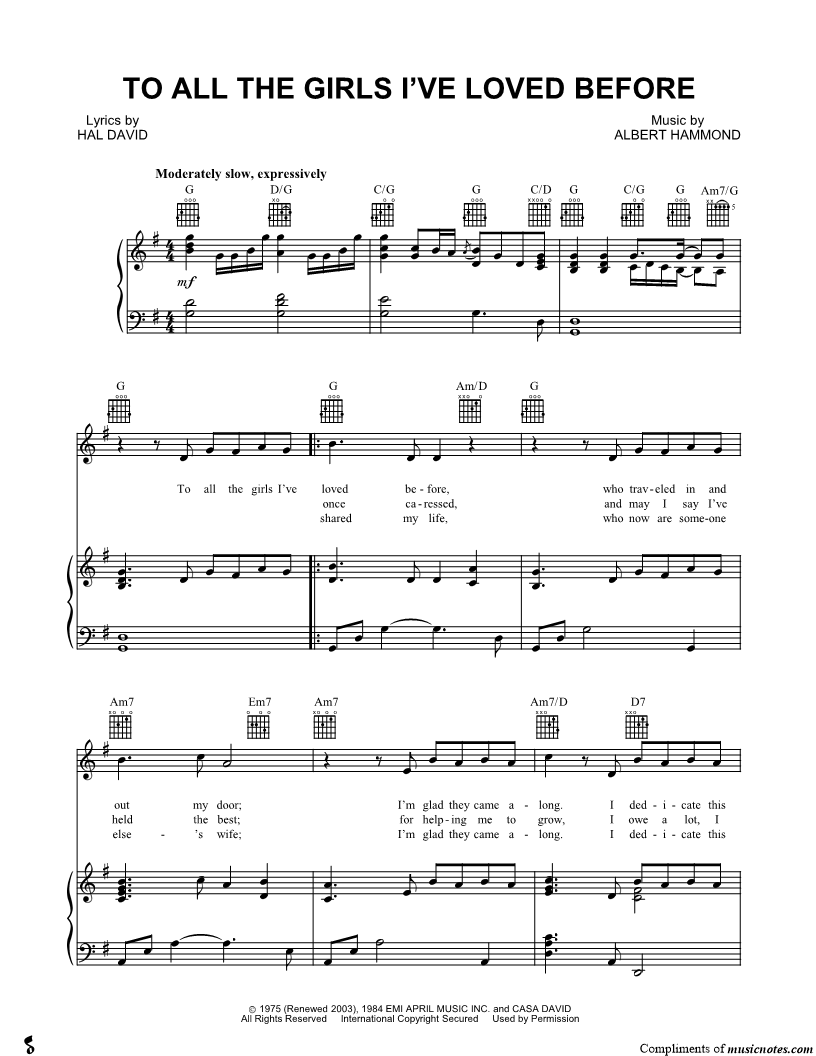 To all the girls I've loved before, who traveled in and out my door; |