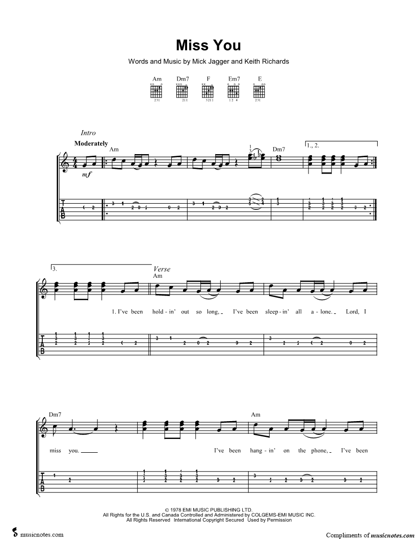 Guitar Tab Guitar/Vocal |