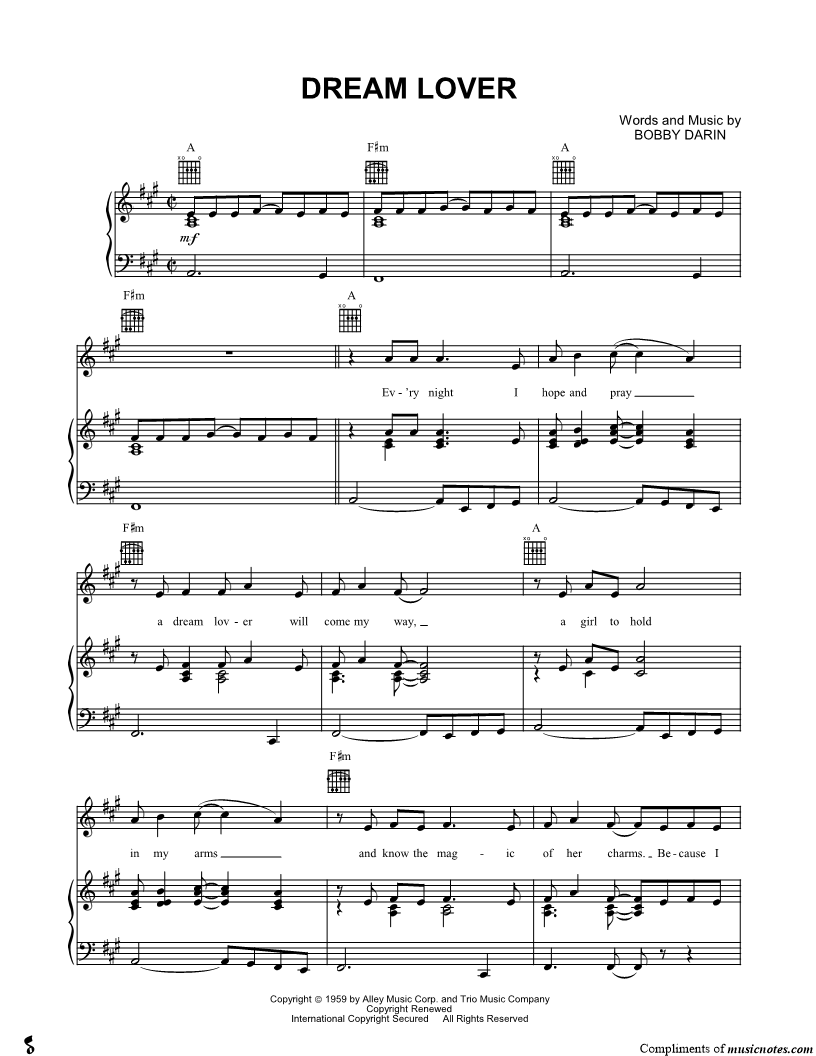 Ev'ry night I hope and pray a dream lover will come my way, a girl to hold in my arms and know the magic of her charms. |